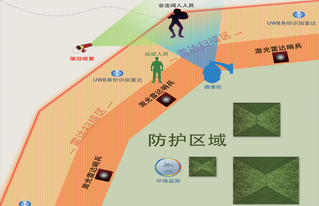 天河電子基于激光雷達(dá)的監(jiān)獄重點(diǎn)區(qū)域目標(biāo)定位監(jiān)管系統(tǒng),旨在彌補(bǔ)視頻監(jiān)控技術(shù)、傳感器報(bào)警技術(shù)被動(dòng)防御的特性和智能圖像分析技術(shù)在環(huán)境應(yīng)用中的局限性,通過(guò)激光雷達(dá)主動(dòng)防御的特性結(jié)合高清視頻監(jiān)控技術(shù),對(duì)重點(diǎn)監(jiān)測(cè)區(qū)域(如:內(nèi)5米防暴通道)的目標(biāo)進(jìn)行定位、跟蹤、放大、記錄目標(biāo)的運(yùn)動(dòng)軌跡,同時(shí)通知獄警和上級(jí)單位進(jìn)行相應(yīng)警情處置。